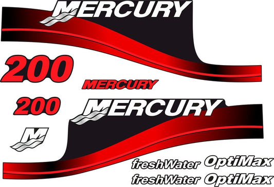 Mercury 200hp Optimax FreshWater outboard engine decals sticker set