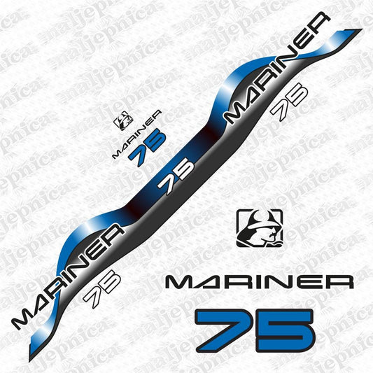 Mariner 75 Aftermarket Replacement Decals (1994-2004) Outboard Decal Sticker Set / Red and Blue