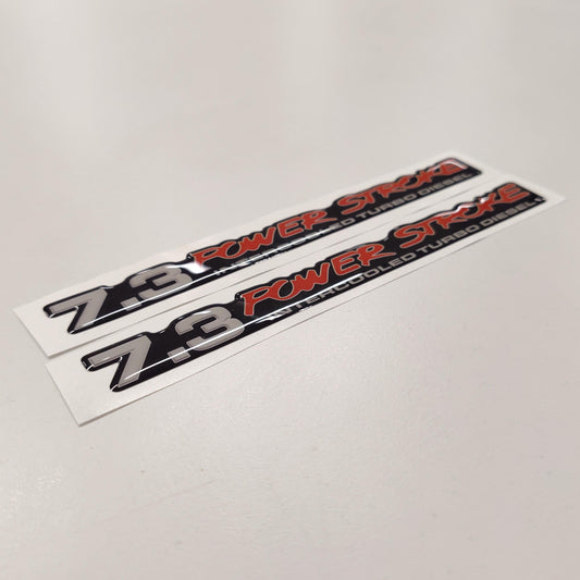 7.3 Power Stroke Intercooled Turbo Diesel Badge 3D Aftermarket Replacement Decals Domed 2pcs / Sticker Resin Set