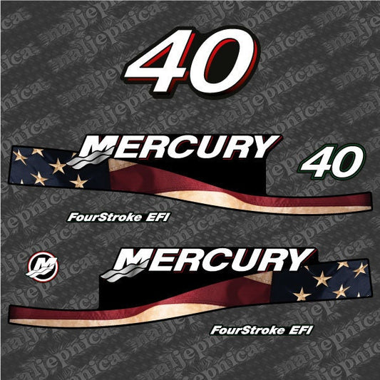 Mercury 40 Four Stroke EFI 2005-2007 US3 Flag / Vintage outboard decal sticker set