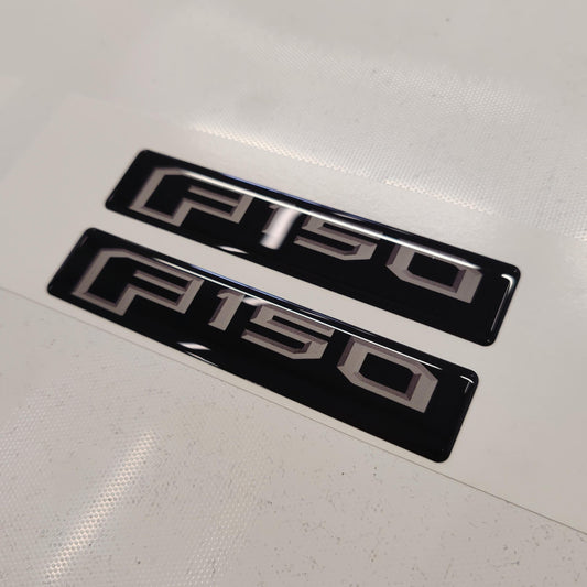 Ford F150 3D Domed Badge Emblem Decals 2pcs / Sticker Resin Set / Gray and Black
