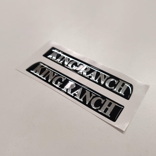 King Ranch 3D Aftermarket Replacement Fender Decals for 2023 and 2024 Ford F250 or F350 Domed Decal 2pcs / Black Chrome Sticker Resin Set
