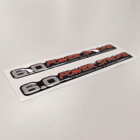 6.0 Power Stroke Intercooled Turbo Diesel Badge 3D Aftermarket Replacement Decals Domed 2pcs / Sticker Resin Set